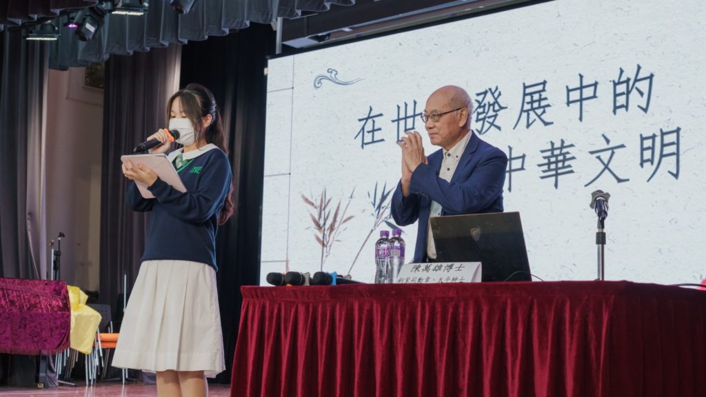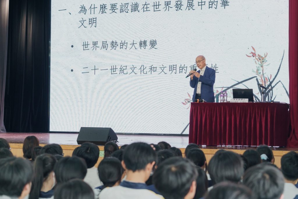 為慶祝中華人民共和國成立76週年,本校於9月30日舉辦高中週會講座–《在世界發展中的中華文明》,講座由饒宗頤文化館名譽館長陳萬雄博士(銅紫荊勳章、太平紳士)主講,深入剖析中華文明在全球的重要角色,勉勵同學要好好發揮中國軟實力,繼續使中國成為世界舞台上舉足輕重的國家。
