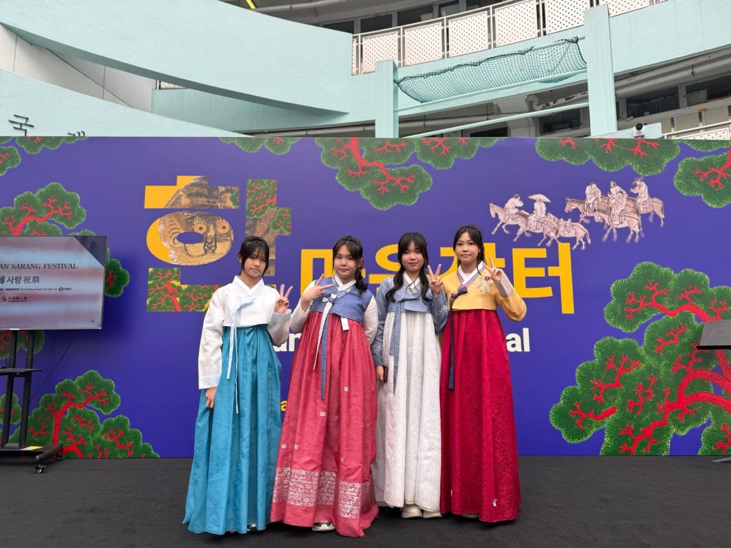 在11月1日,我們帶著學生們前往香港韓國國際學校參加韓國的Korean Sarang Festival活動,這是一個充滿韓國文化魅力的盛會。當我們走進校園時,首先映入眼簾的是五顏六色的裝飾和熙熙攘攘的人潮,讓人感受到節日的熱鬧氣氛。
