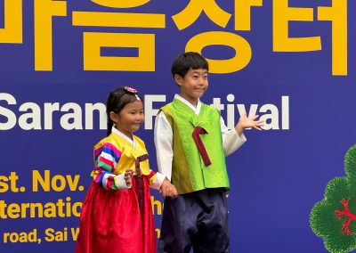 在11月1日,我們帶著學生們前往香港韓國國際學校參加韓國的Korean Sarang Festival活動,這是一個充滿韓國文化魅力的盛會。當我們走進校園時,首先映入眼簾的是五顏六色的裝飾和熙熙攘攘的人潮,讓人感受到節日的熱鬧氣氛。